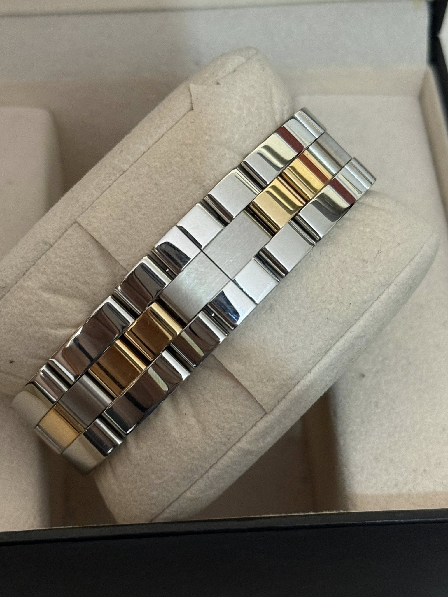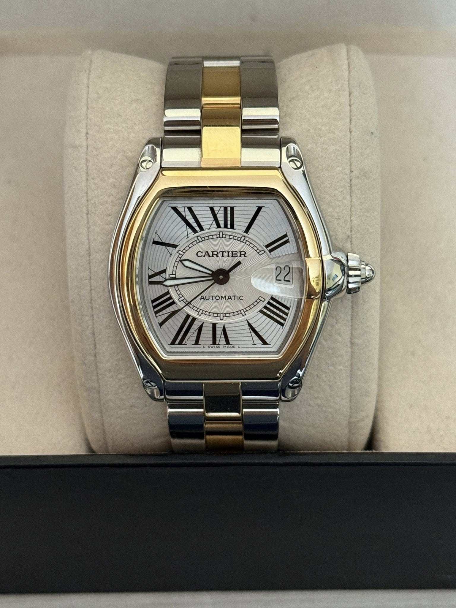 Reloj Cartier acero y oro de 38mm USADO para caballero, movimiento automatico suizo, cristal safirado, correa para una muñeca de 18.5cm, se entrega con sus documentos.