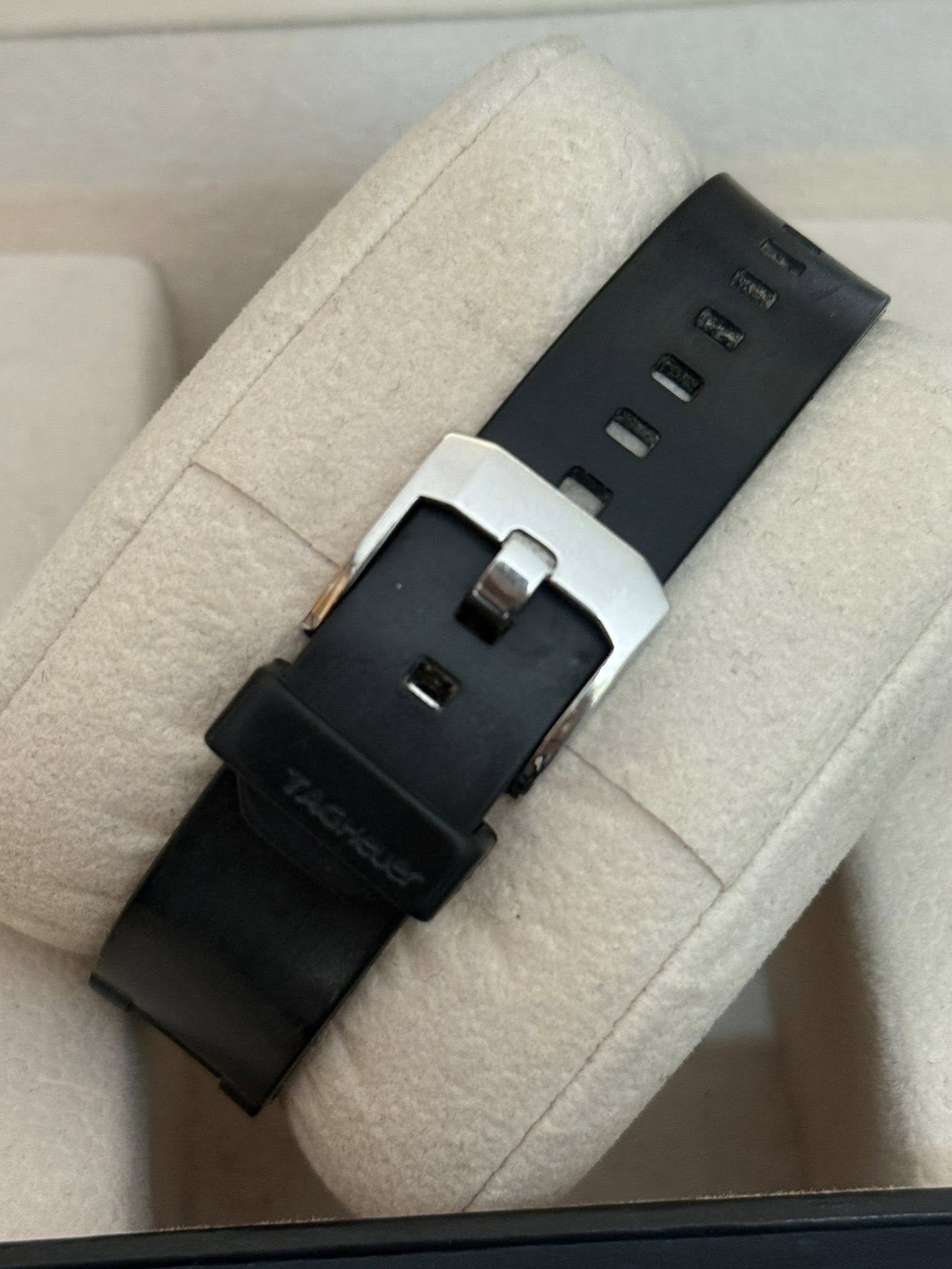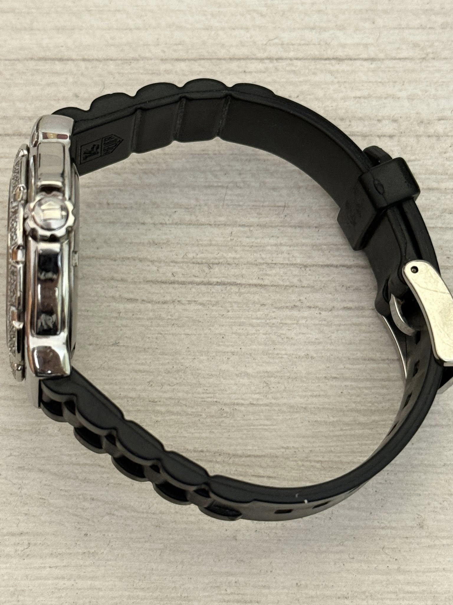 Reloj Tag Heuer de 37mm USADO para dama, movimiento de cuarzo suizo, cristal safirado, bisel con diamantes, corona y tapa de rosca, correa en goma ajustable, se entrega sin estuche.